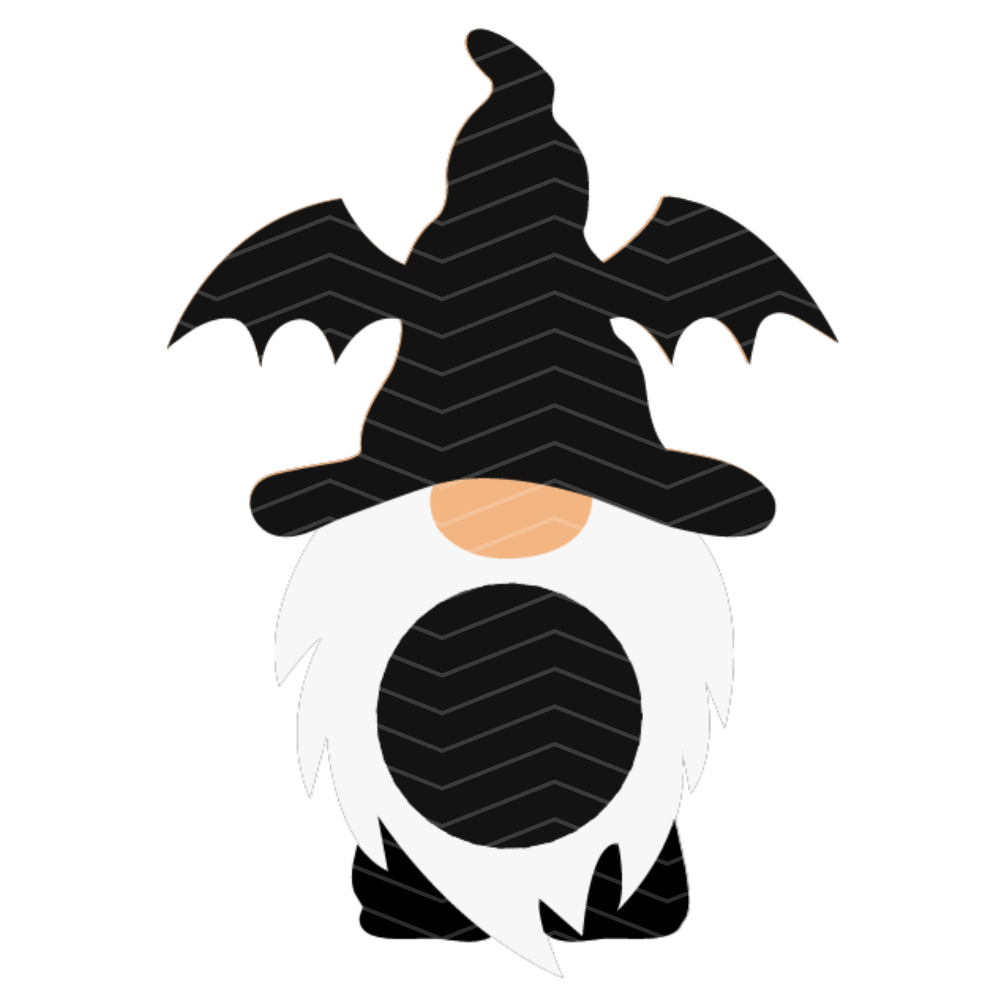 En fantasifull Halloween-design föreställande en nisse med långt vitt skägg, svart spetsig hatt och två fladdermusvingar som sticker ut från hatten. I mitten finns en yta där du kan fästa en delad julgranskula fylld med godis. En rolig och kuslig dekoration som gör Halloween-godiset extra speciellt – perfekt till ”bus eller godis”, kalas eller som prydnad på dukningen.